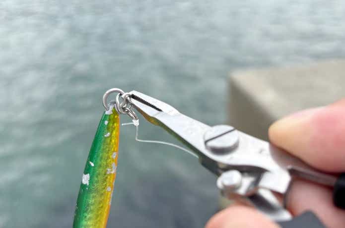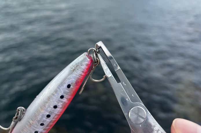 ただし、厚手のジギング用グローブを着用していると、同社のスプリットリングプライヤーHDやアルミプライヤー175の方が操作しやすいかもしれません。
