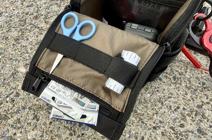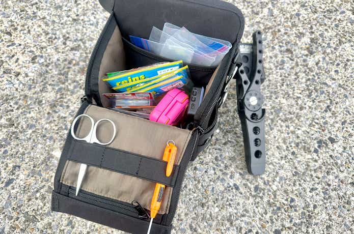 バッグの中で探しがちなツールもバンジーコードで固定収納できます。